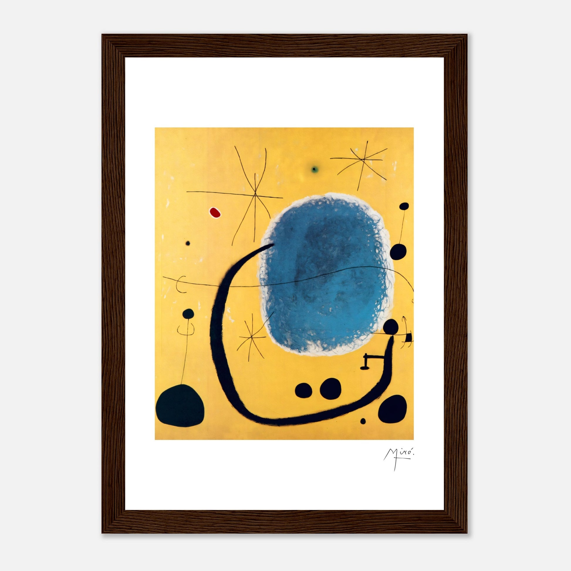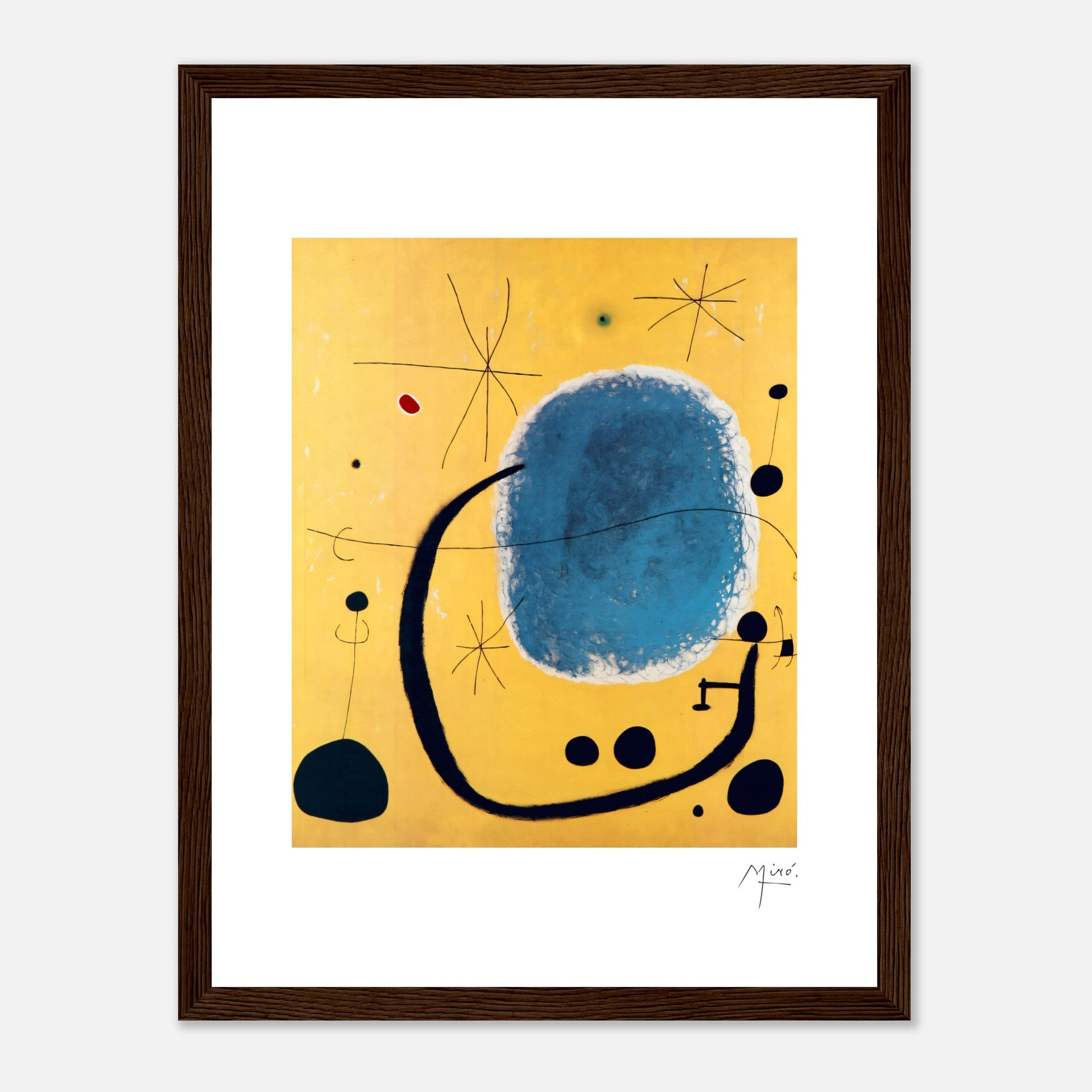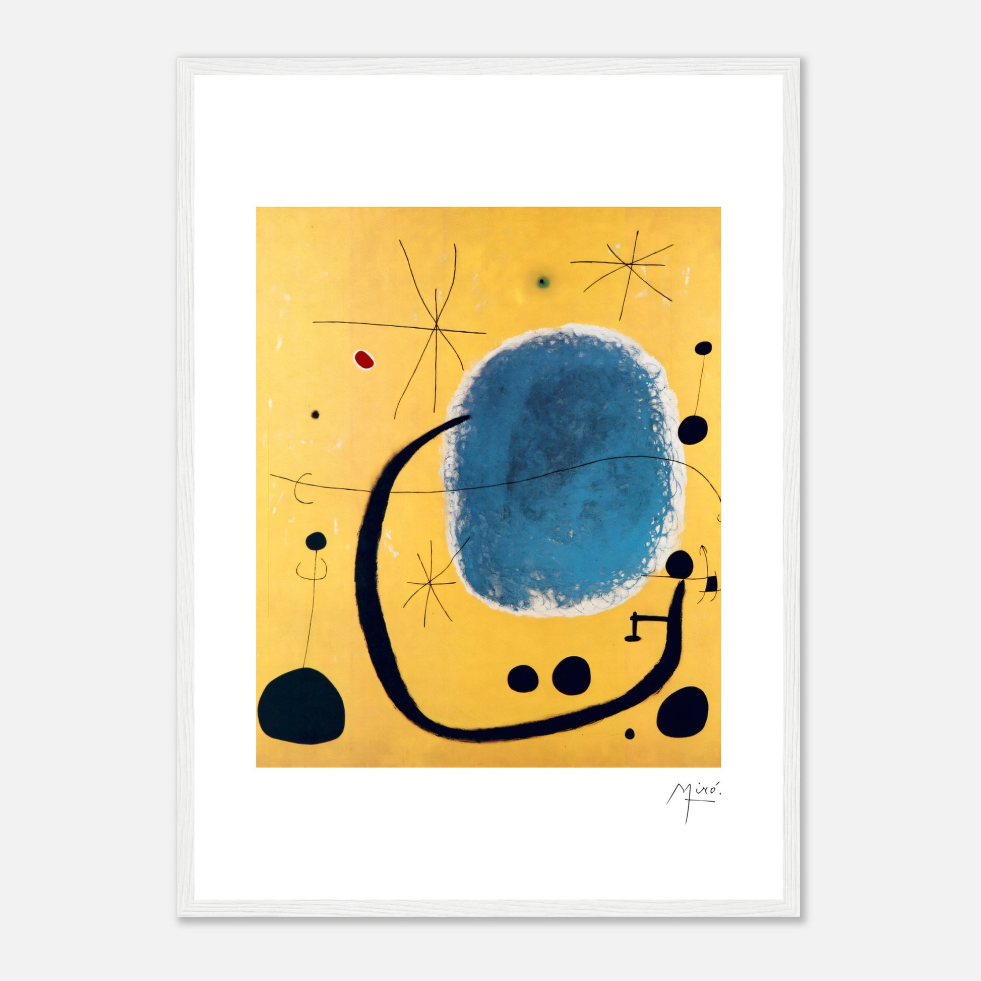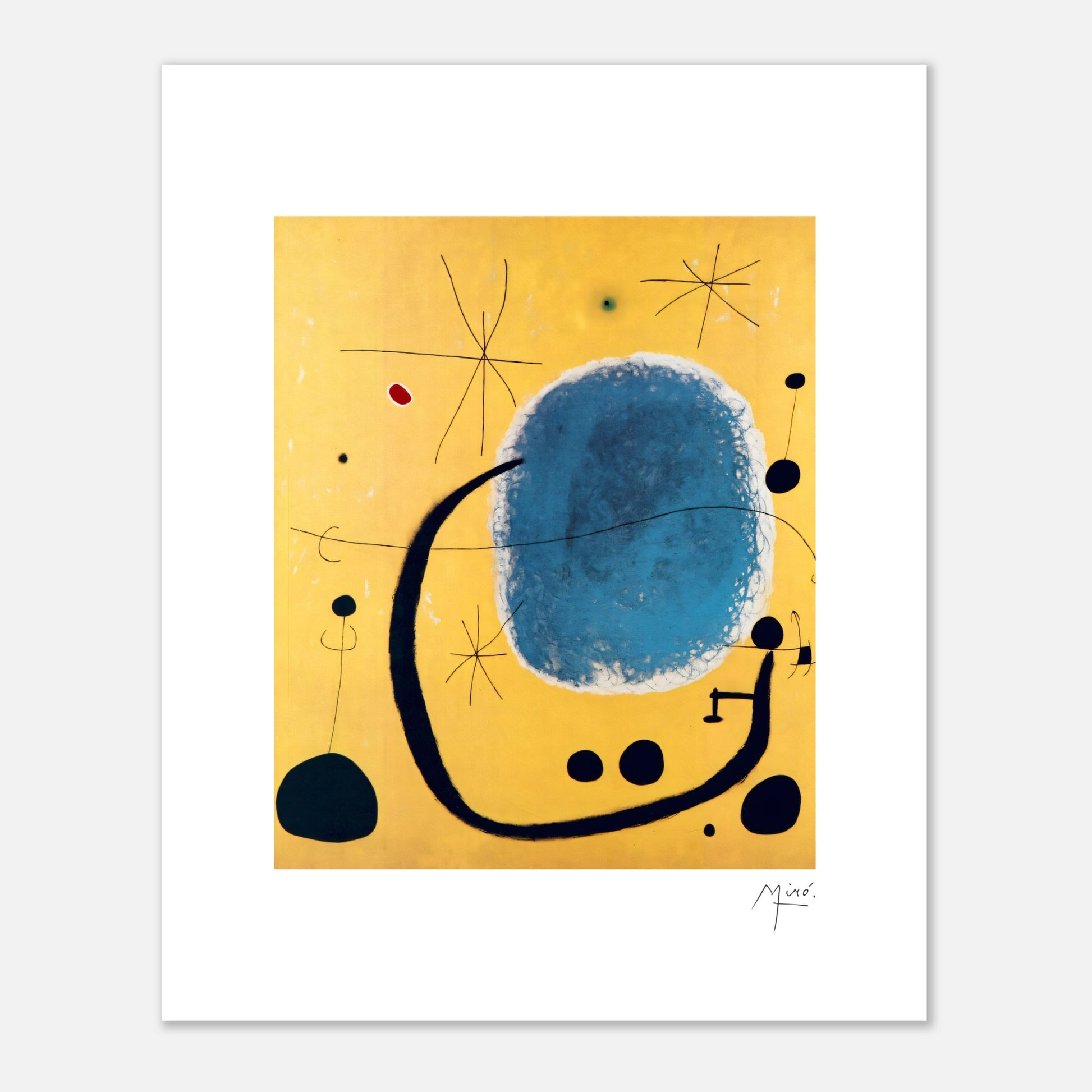 „The Gold of the Azure“ wurde 1967 geschaffen und ist ein Kunstwerk von Joan Miro. Miros unverwechselbarer Stil zeichnet sich durch skurrile, halbabstrakte und organische Formen sowie kalligrafische Linien und eine zurückhaltende Farbpalette aus.