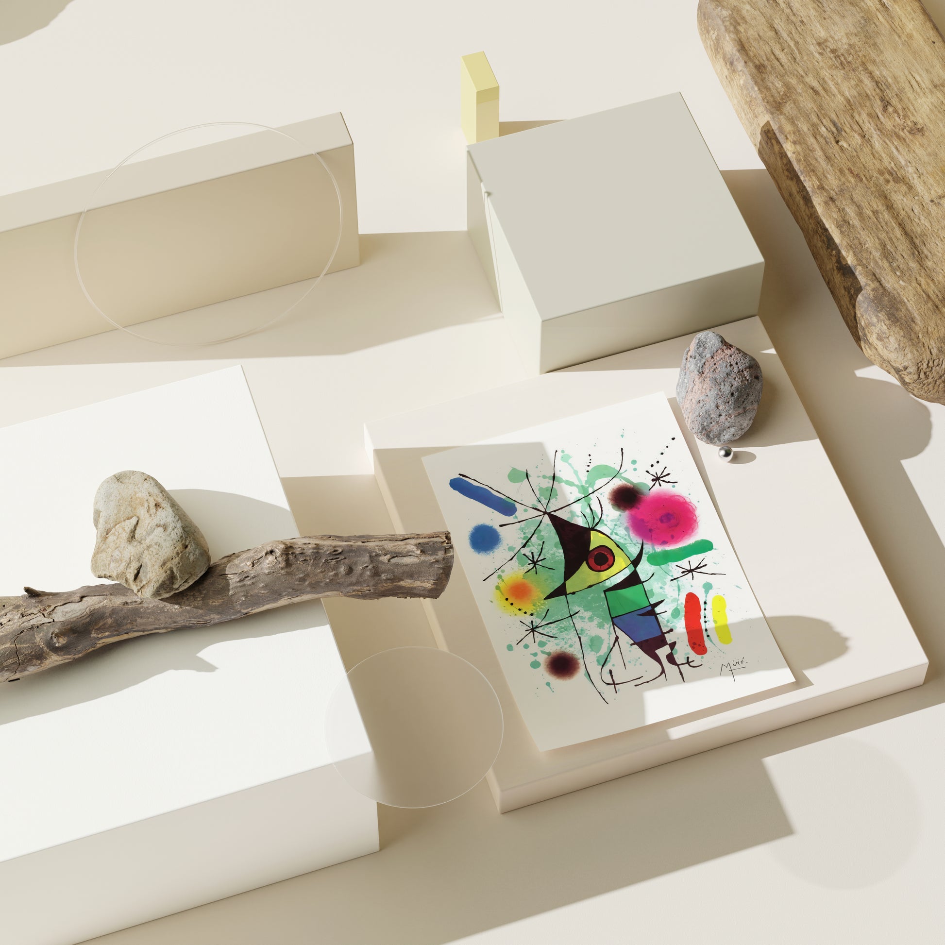 „The Singing Fish“ zeichnet sich durch eine begrenzte Palette reiner Farbtöne – hauptsächlich Schwarz und Rot – sowie kühne, unkomplizierte Formen aus und verkörpert bemerkenswerte Prägnanz gepaart mit der poetischen Kraft des Ausdrucks. Das Gemälde strahlt eine bezaubernd kindliche Einfachheit und Verspieltheit aus. Miro ließ sich von primitiven Wurzeln inspirieren, insbesondere von der prähistorischen Höhlenkunst seiner Heimat Spanien, und suchte nach einer grundlegenden Bildsprache. Seine Einbeziehung von Zeichen und Symbolen, die aus elementaren linearen Elementen aufgebaut sind, bereichert das Werk mit einer tiefgründigen und zeitlosen Qualität.