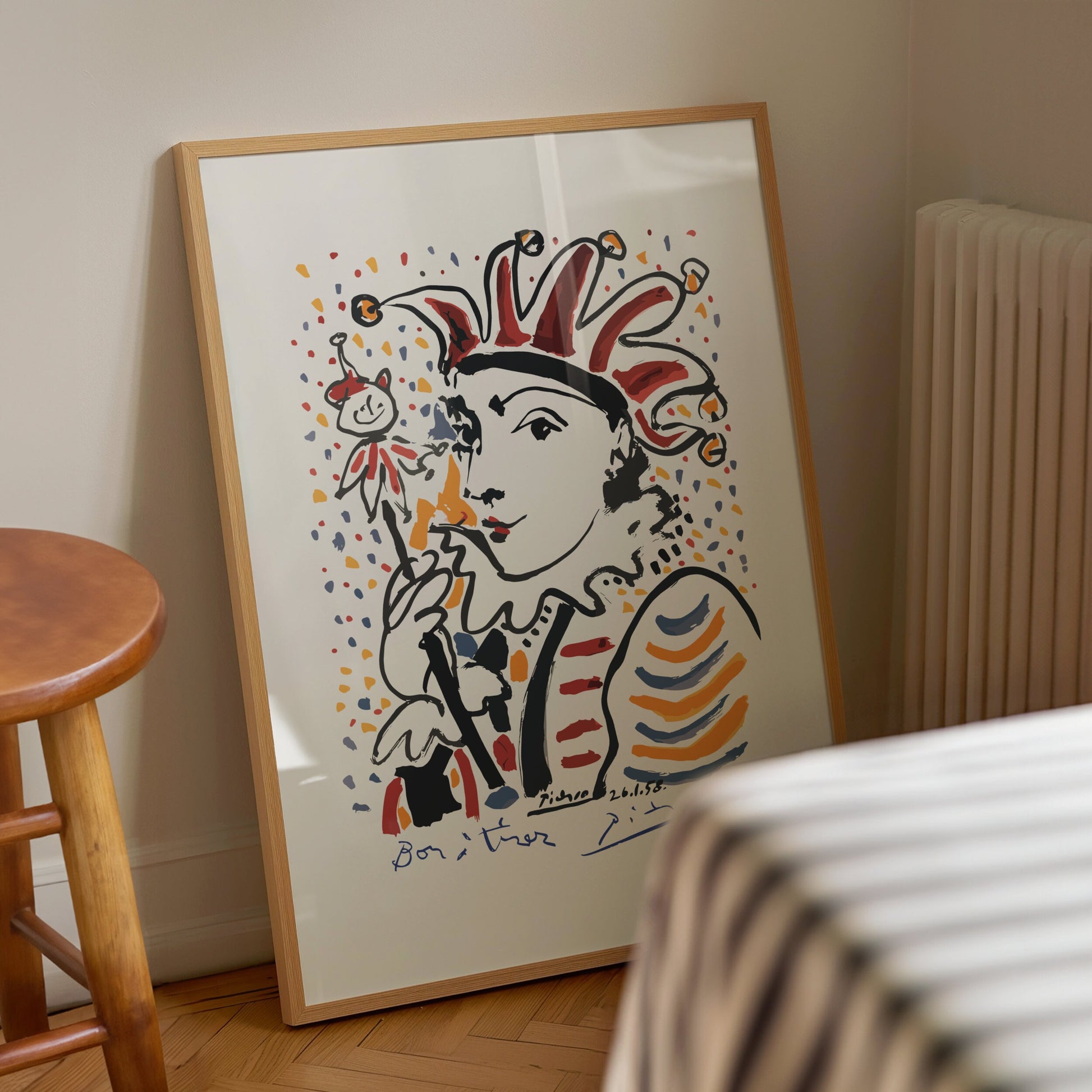 This poster is a high-quality print of Pablo Picasso's Carnaval from 1958.