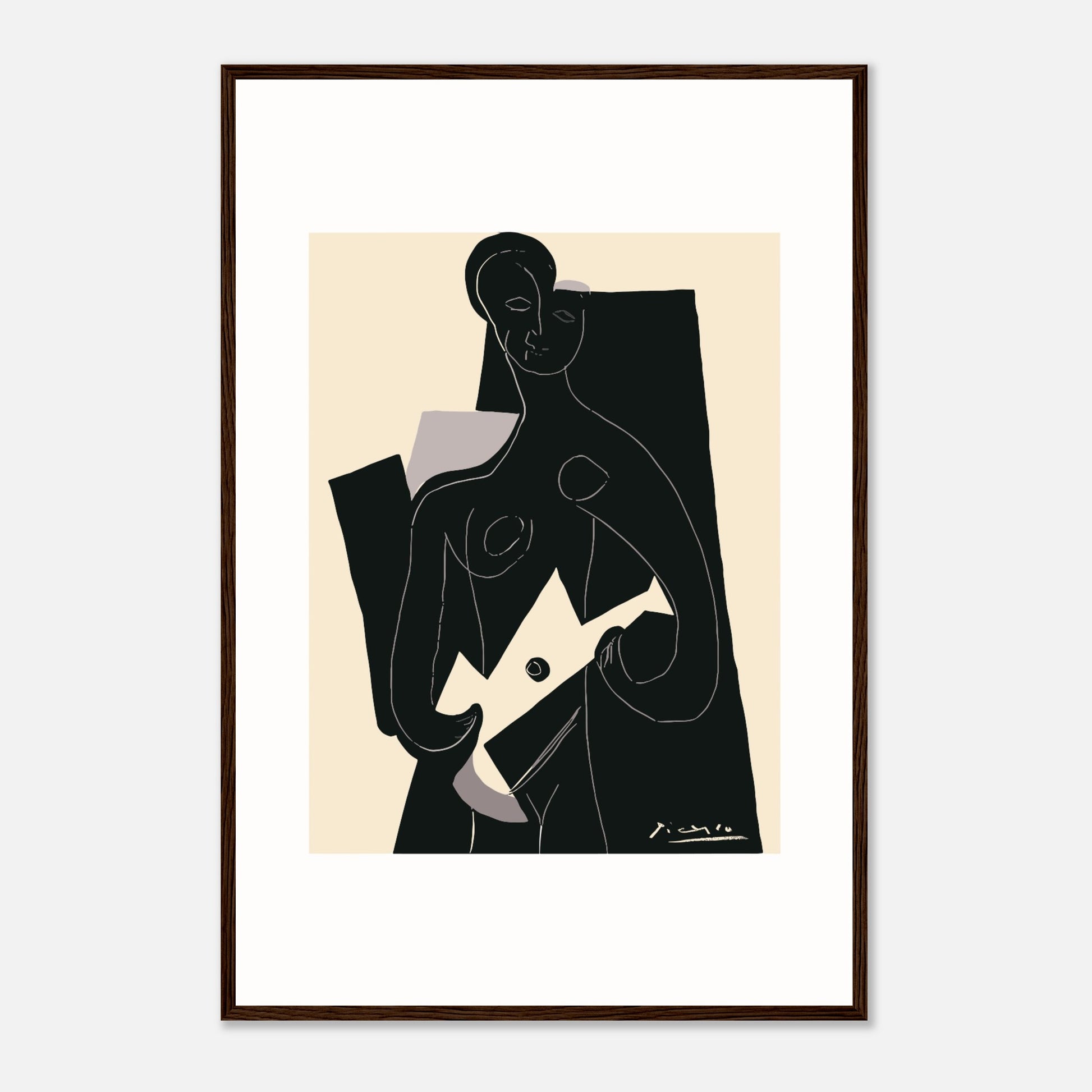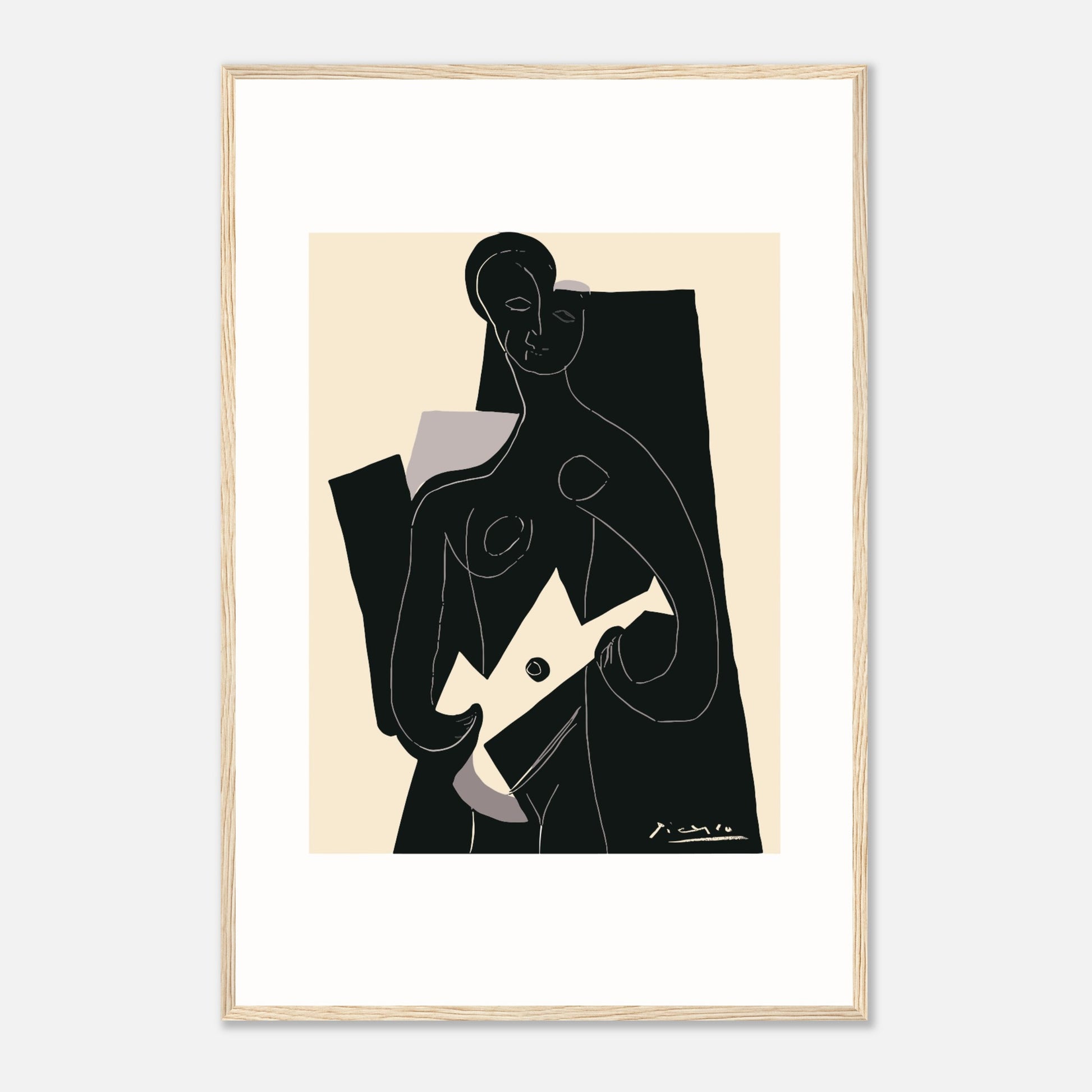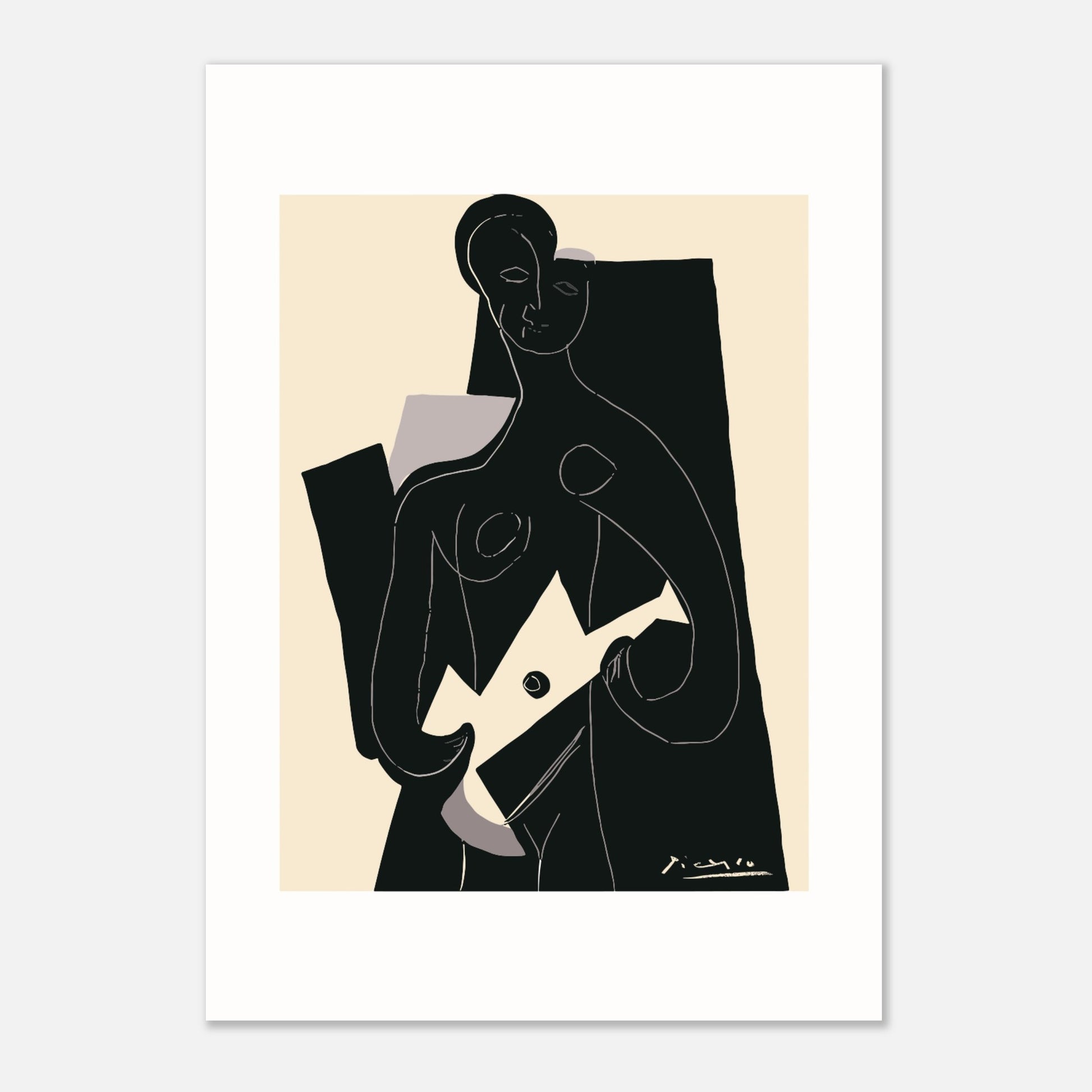 „Femme à la Guitare“ wurde ursprünglich von Picasso in der Linolschnitttechnik angefertigt und stellt das Können des Künstlers in der Druckgrafik unter Beweis. Picasso, bekannt für seine innovativen Ansätze, fertigte im Laufe seiner Karriere zahlreiche Linolschnitte an. Bei dieser Methode schnitzen Künstler in einen Linoleumblock, um ein Reliefbild zu erstellen, das dann mit Tinte eingefärbt und gedruckt wird. Bemerkenswert ist, dass Picasso 1959 die Ein-Block-Technik einführte, eine bahnbrechende Methode, die es ihm ermöglichte, komplex strukturierte Arbeiten auf Papier zu schaffen. Dieser besondere Linolschnitt, der einen kubistischen Stil verkörpert, fängt die Essenz einer Gitarre spielenden Frau mit bemerkenswerter Tiefe und Kreativität ein.