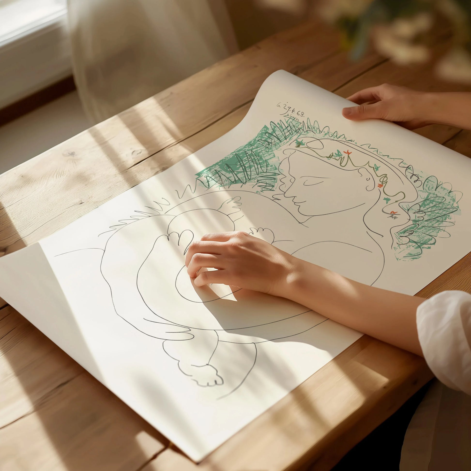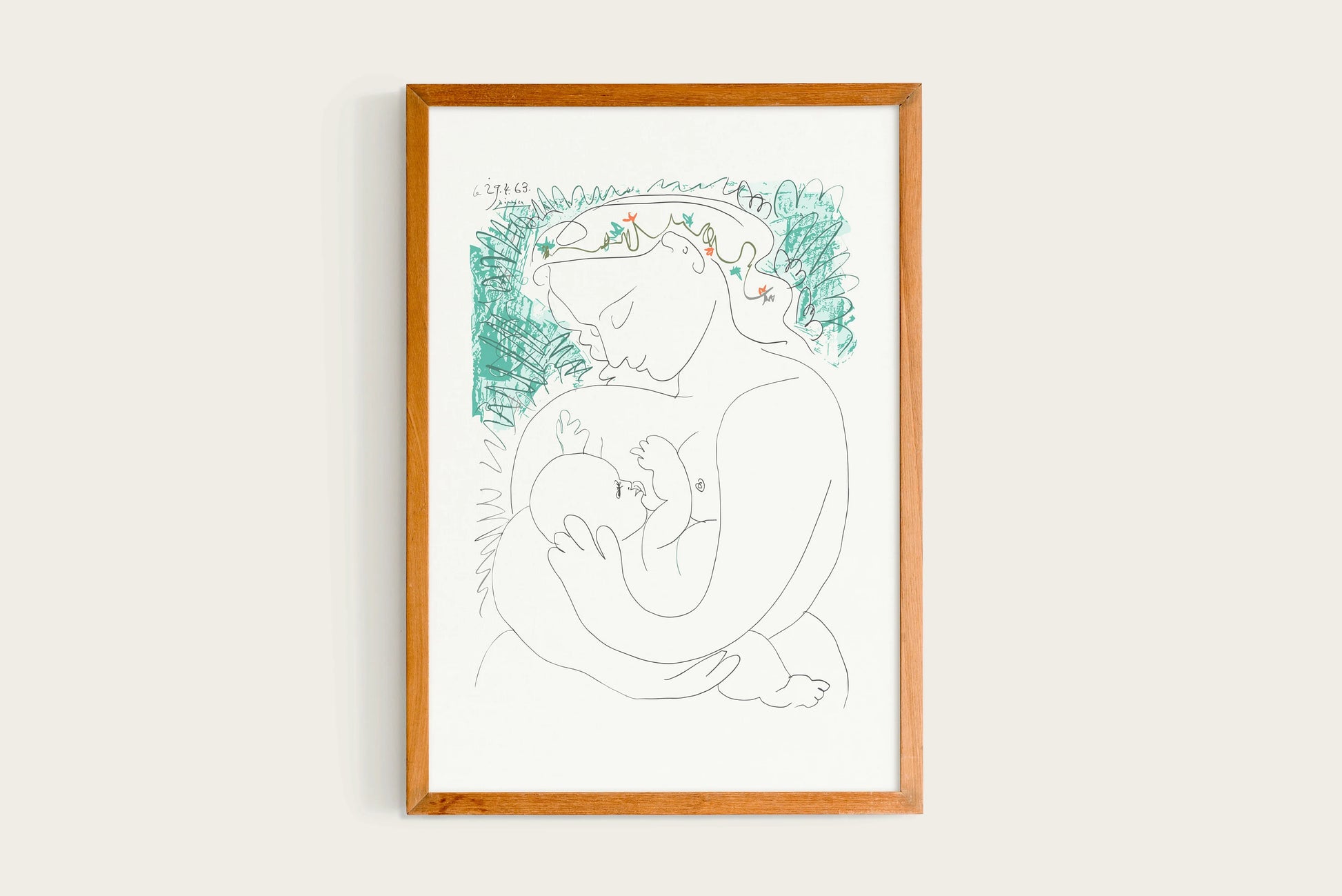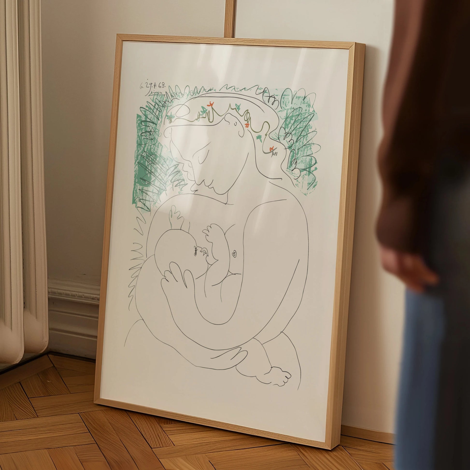 This poster is a high-quality print of Pablo Picasso's Maternité Femme et enfant (Mother & Child) from 1963.