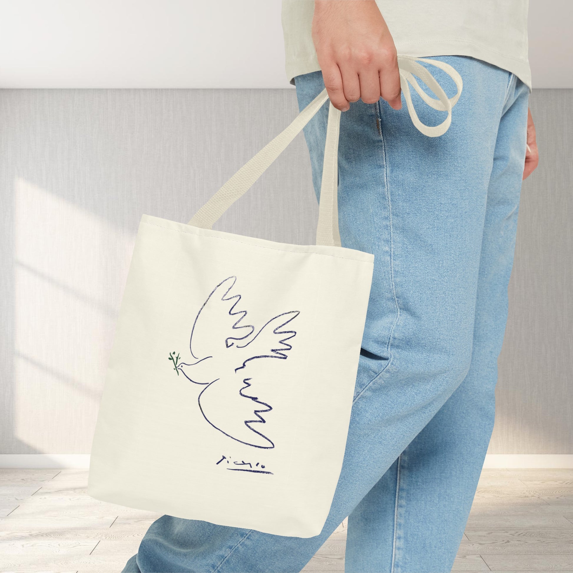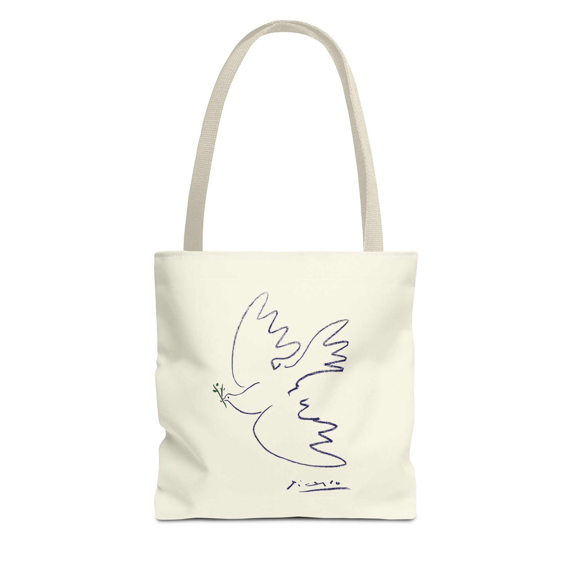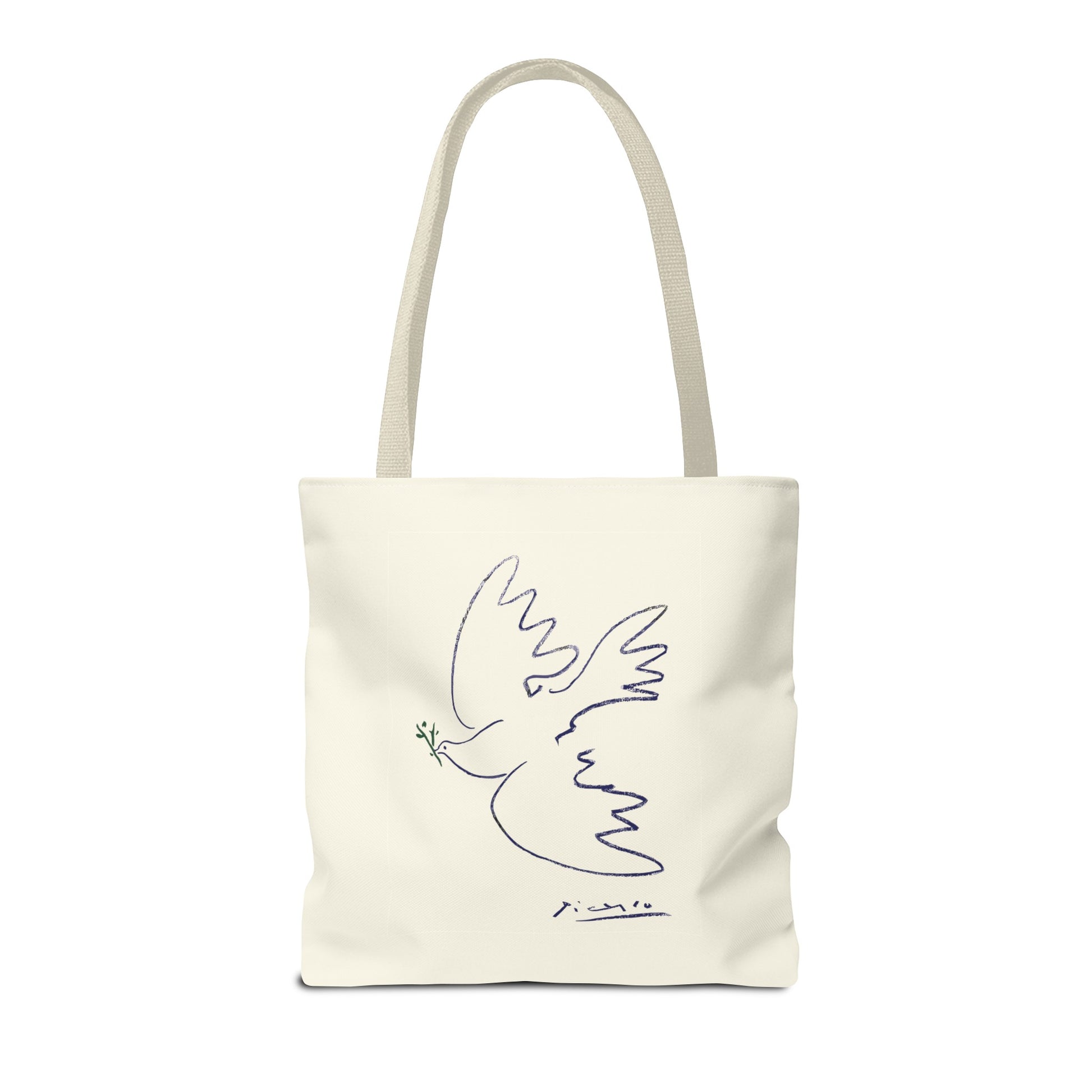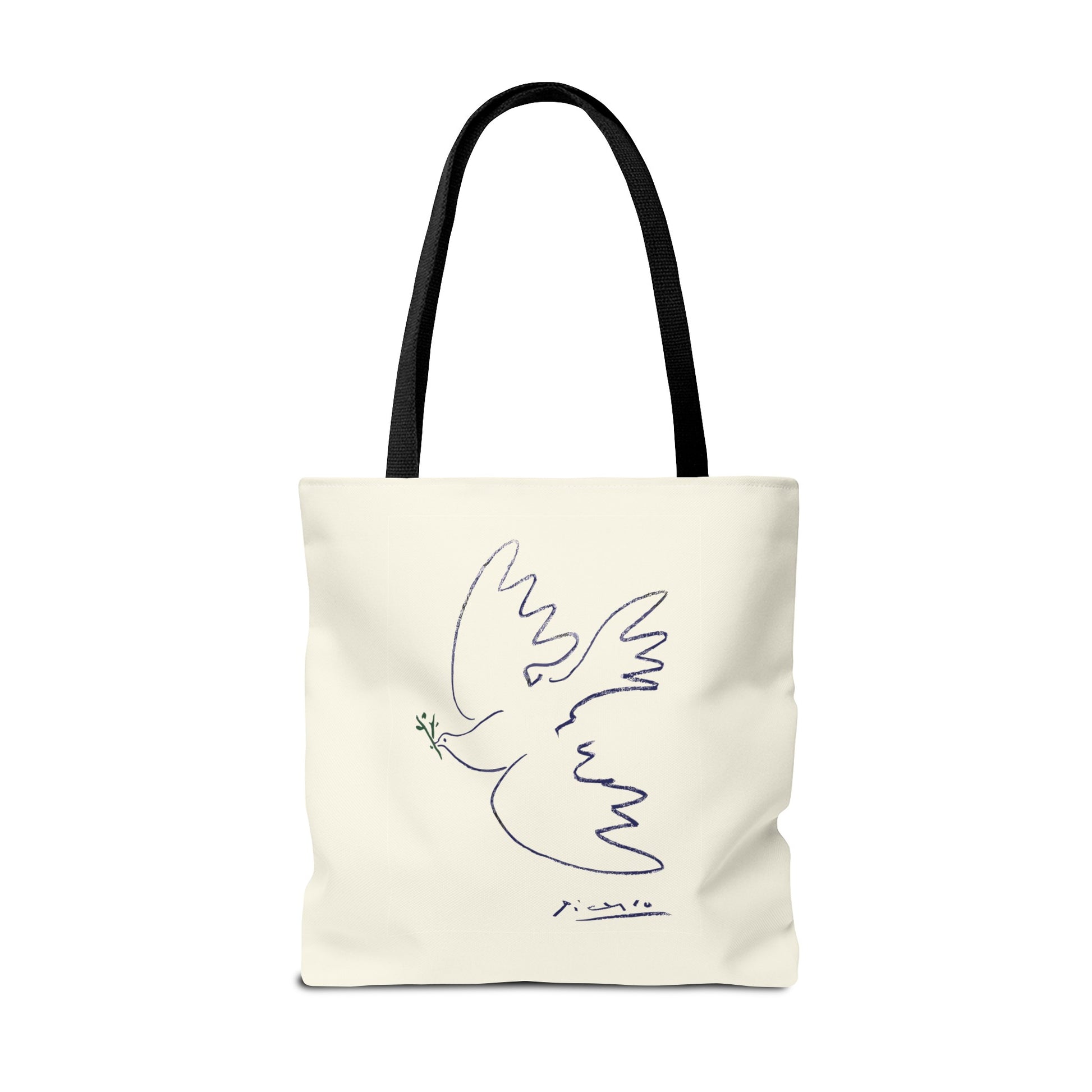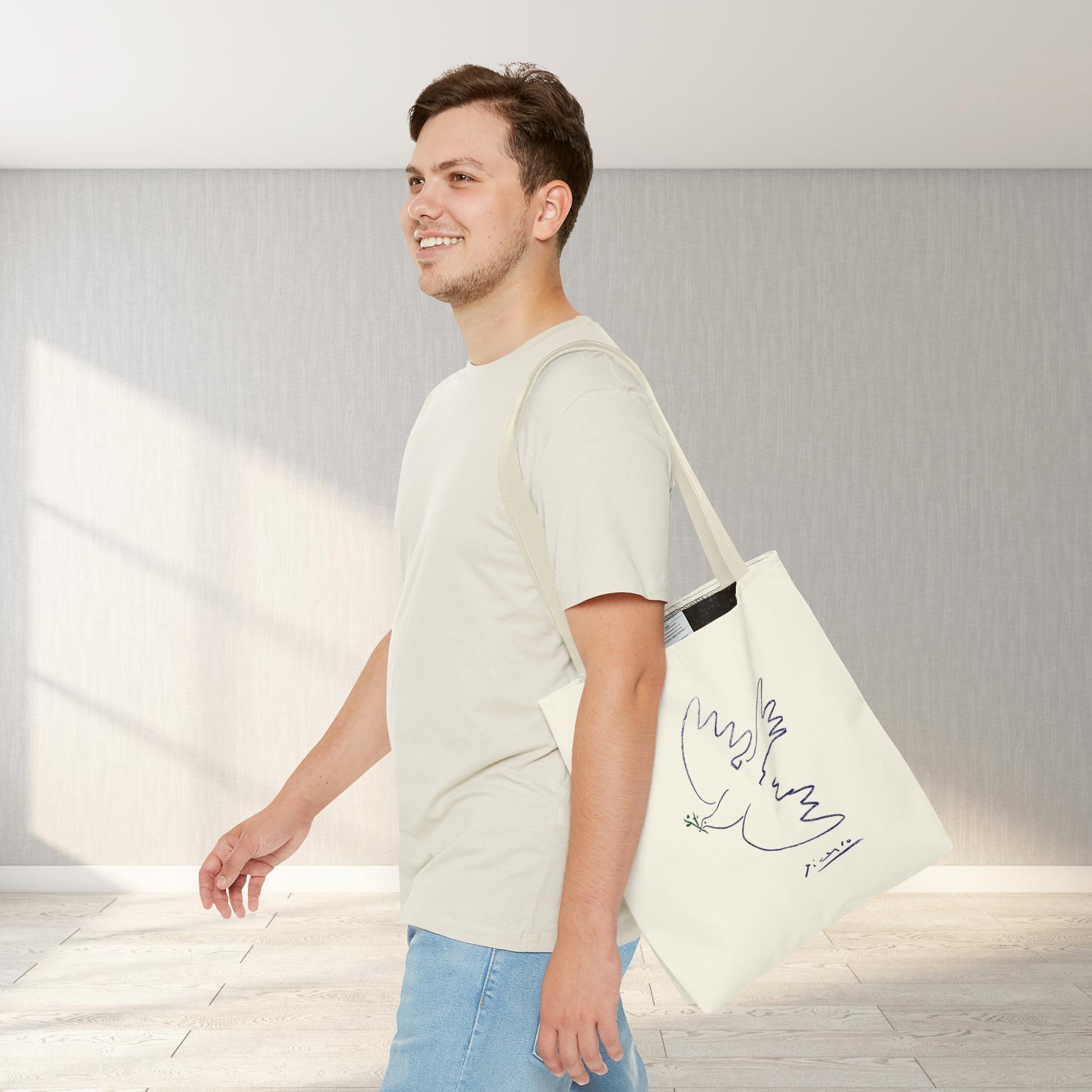 A tote shipping canvas bag with the famous and iconic art/painting from Pablo Picasso "Dove of Peace".