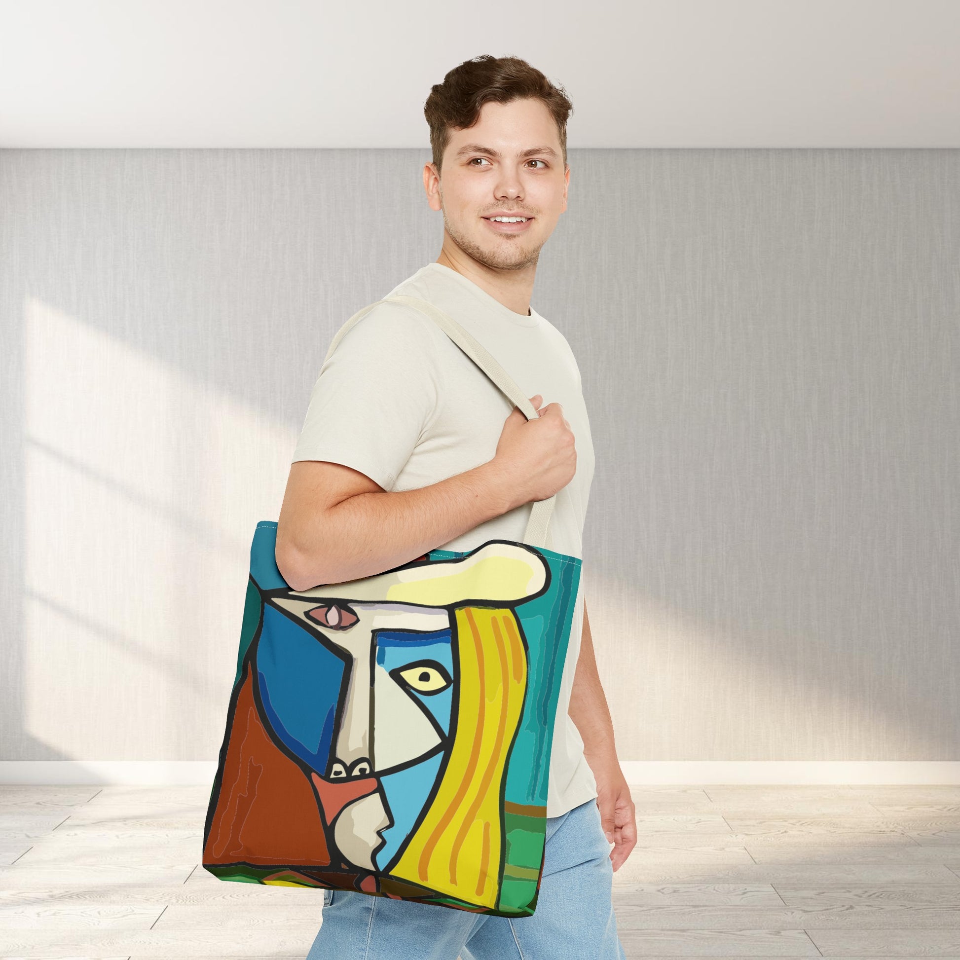 A tote shipping canvas bag with the famous and iconic art/painting from Pablo Picasso "The Woman".