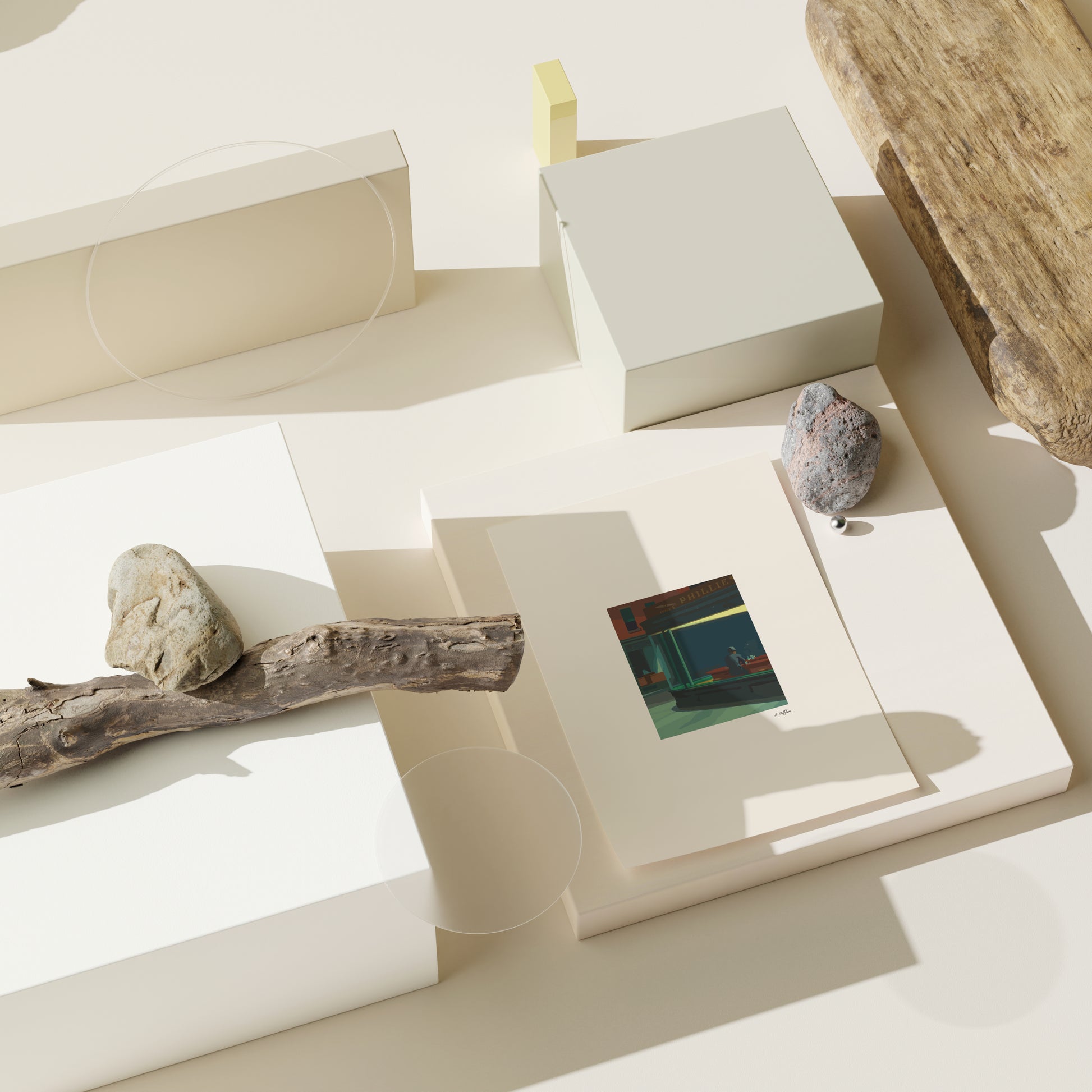 Edward Hopper, Nighthawks, 1942 Vertical (with Passport, Passepartout)